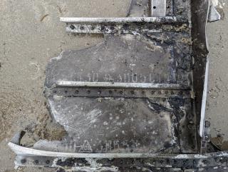It is the bottom and port side of the rear fuselage, between the cockpit area and the tail assembly, all flattened out. I enclose a picture of it as it was found on the beach (the finder's photo). It is about 2 meters long, and in the foreground in the picture you see the bottom with the ventral hatch (for some equipment access), and above the square side hatch, also for various service access. The oval shape of the ventral hatch hints at it being an FW190A-6, as that hatch was round on most other models.